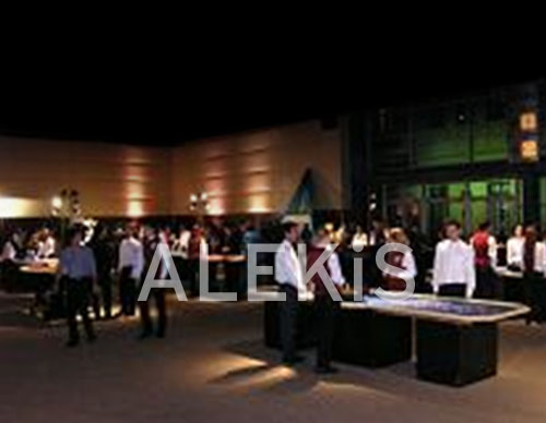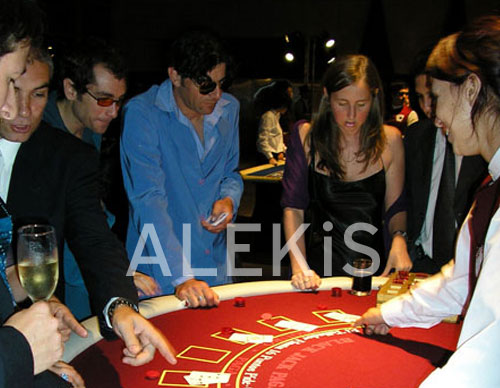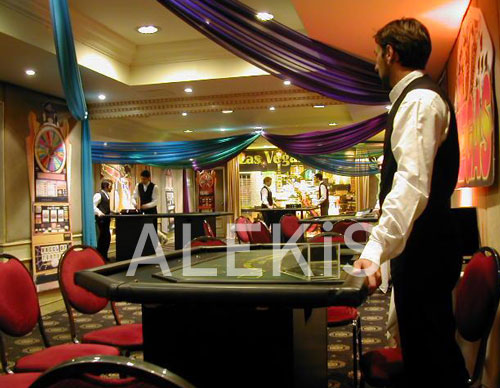 Mesas de Ruleta, Black Jack, Punto y banca, Póker, con dinero de fantasía, experimentados croupiers. Puede incluirse ambientación de casino, máquinas tragamonedas, vitrola a fichas (estilo antiguo), videojuegos, flippers, dardos electrónicos, metegoles y otros juegos.
